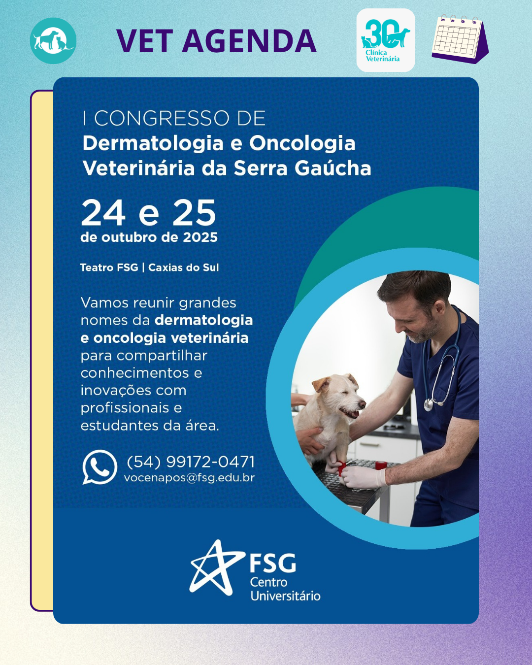 InícioVetAgenda1º Congresso de Dermatologia e Oncologia Veterinária da Serra Gaúcha