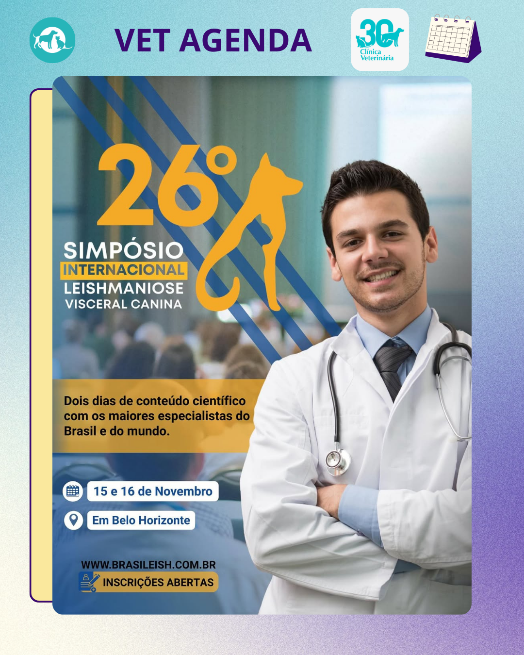 Nos dias 15 e 16 de novembro, Belo Horizonte será o palco do 26º Simpósio Internacional de Leishmaniose Visceral Canina, reunindo os maiores especialistas do Brasil e do mundo para dois dias de muito conhecimento e atualização científica.