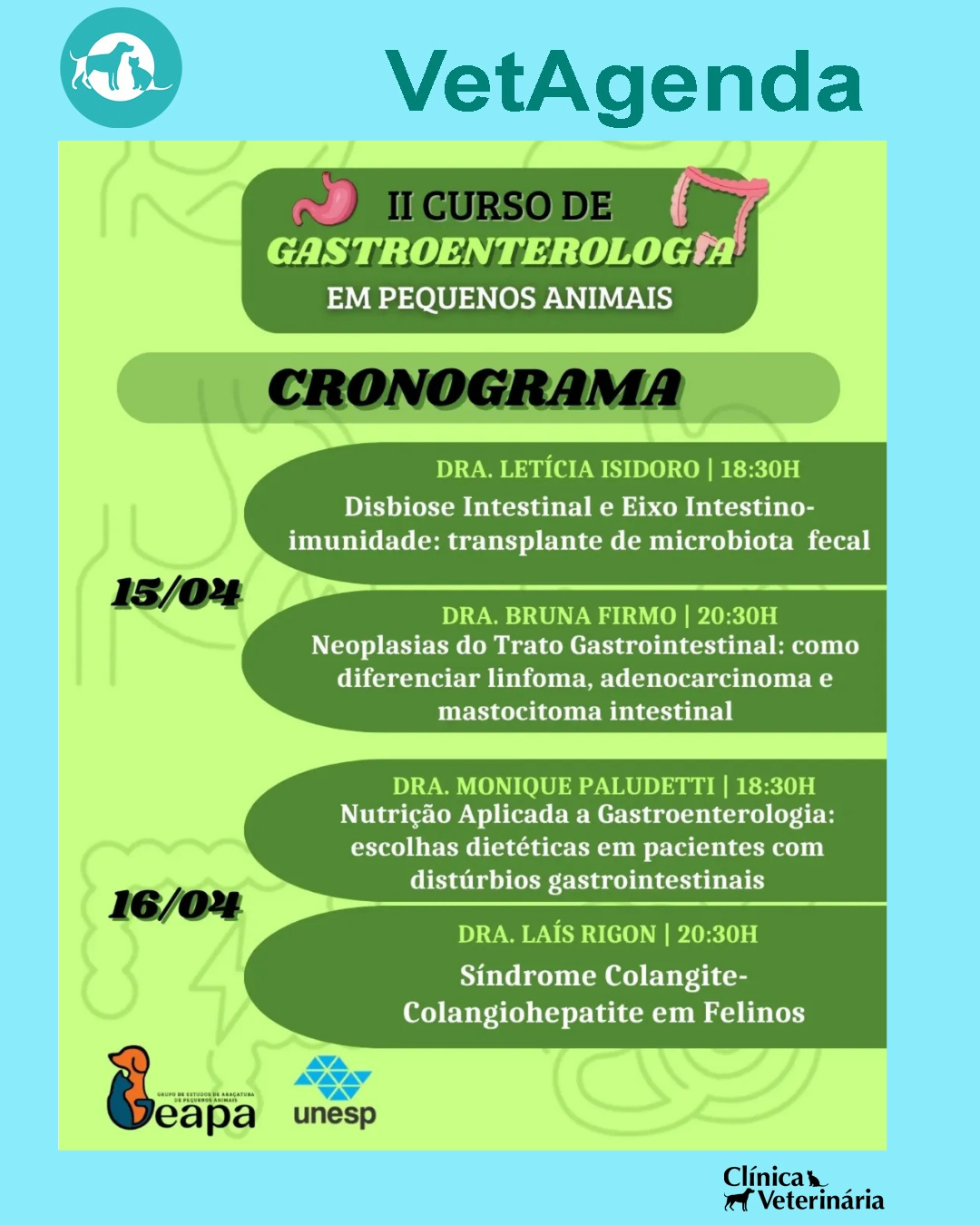 InícioVetAgendaII Curso de Gastroenterologia em Pequenos Animais
