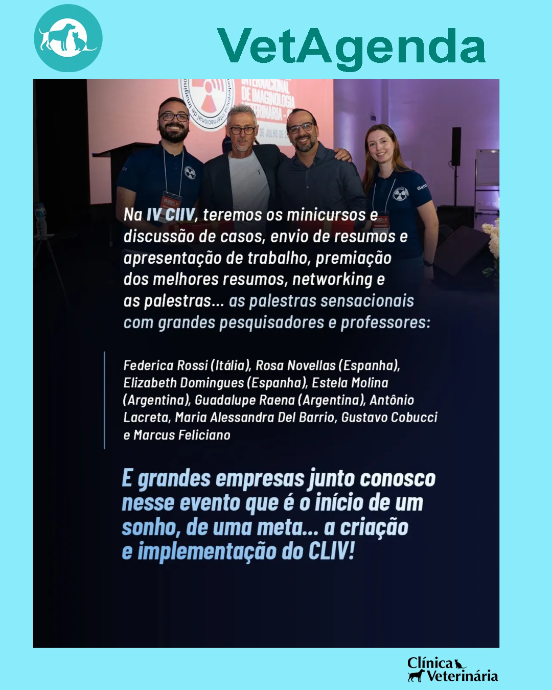 Além de grandes palestrantes, minicursos e palestras, empresas parceiras, networking e valores de inscrição acessíveis para todos, pensando na democratização dp conhecimento, a Conferência Internacional de Imaginologia Veterinária será o marco de lançamento e implementação!