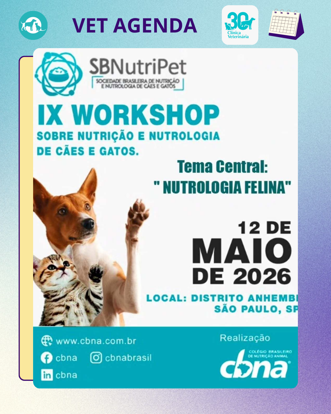 InícioVetAgendaIX Workshop Sobre Nutrição e Nutrologia de Cães e Gatos