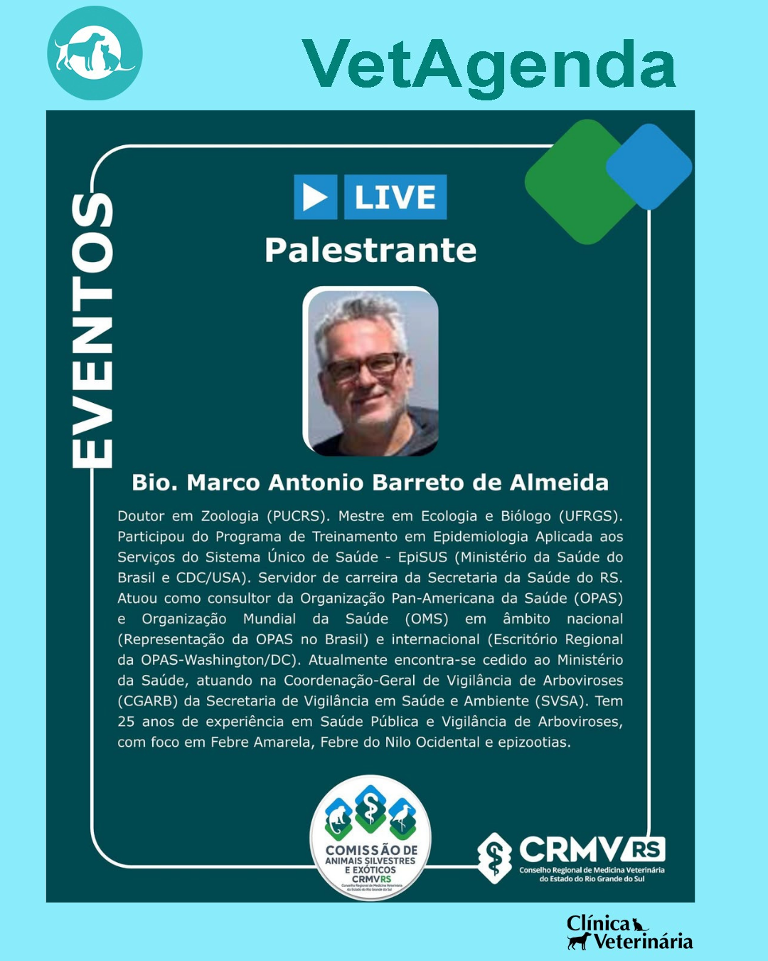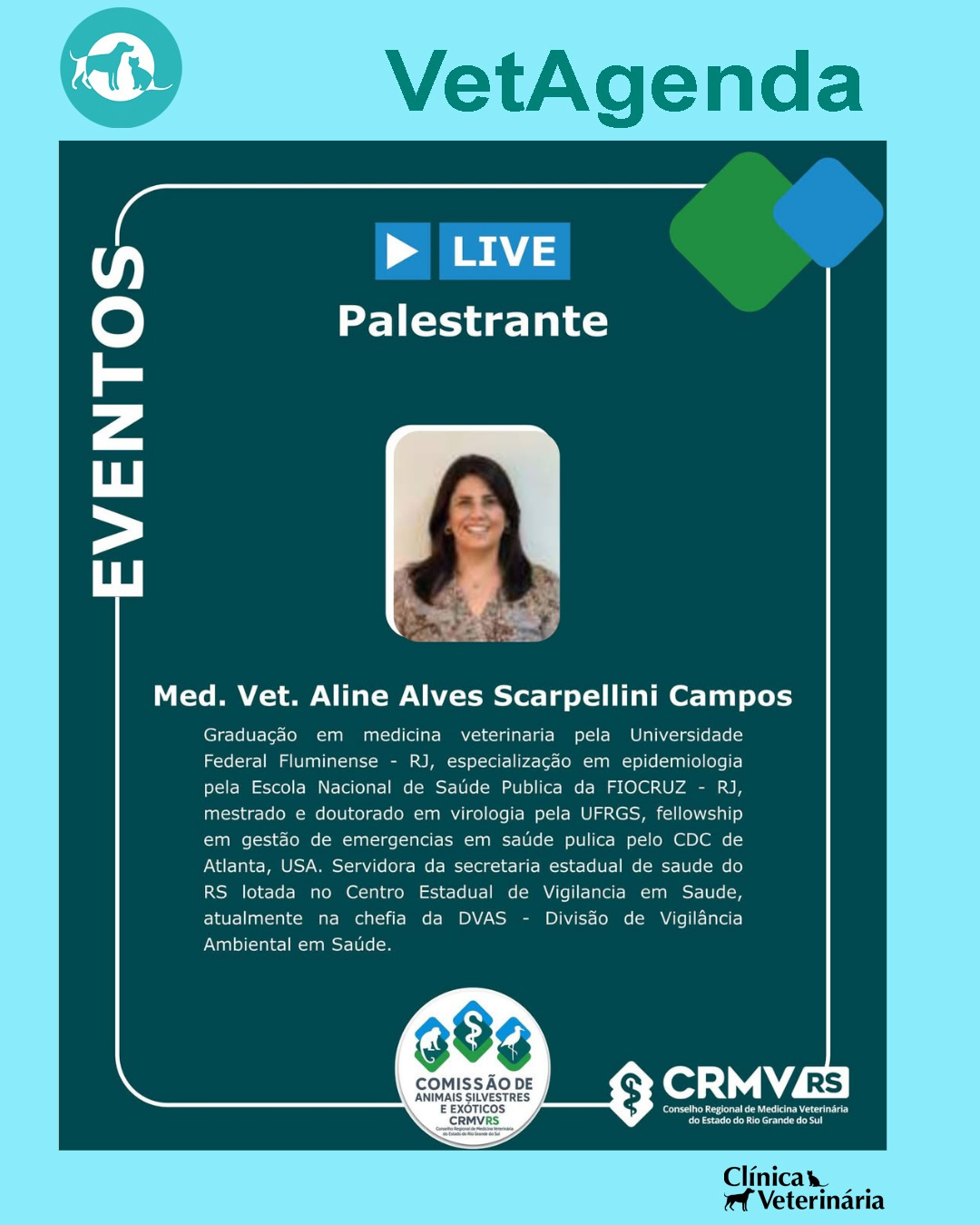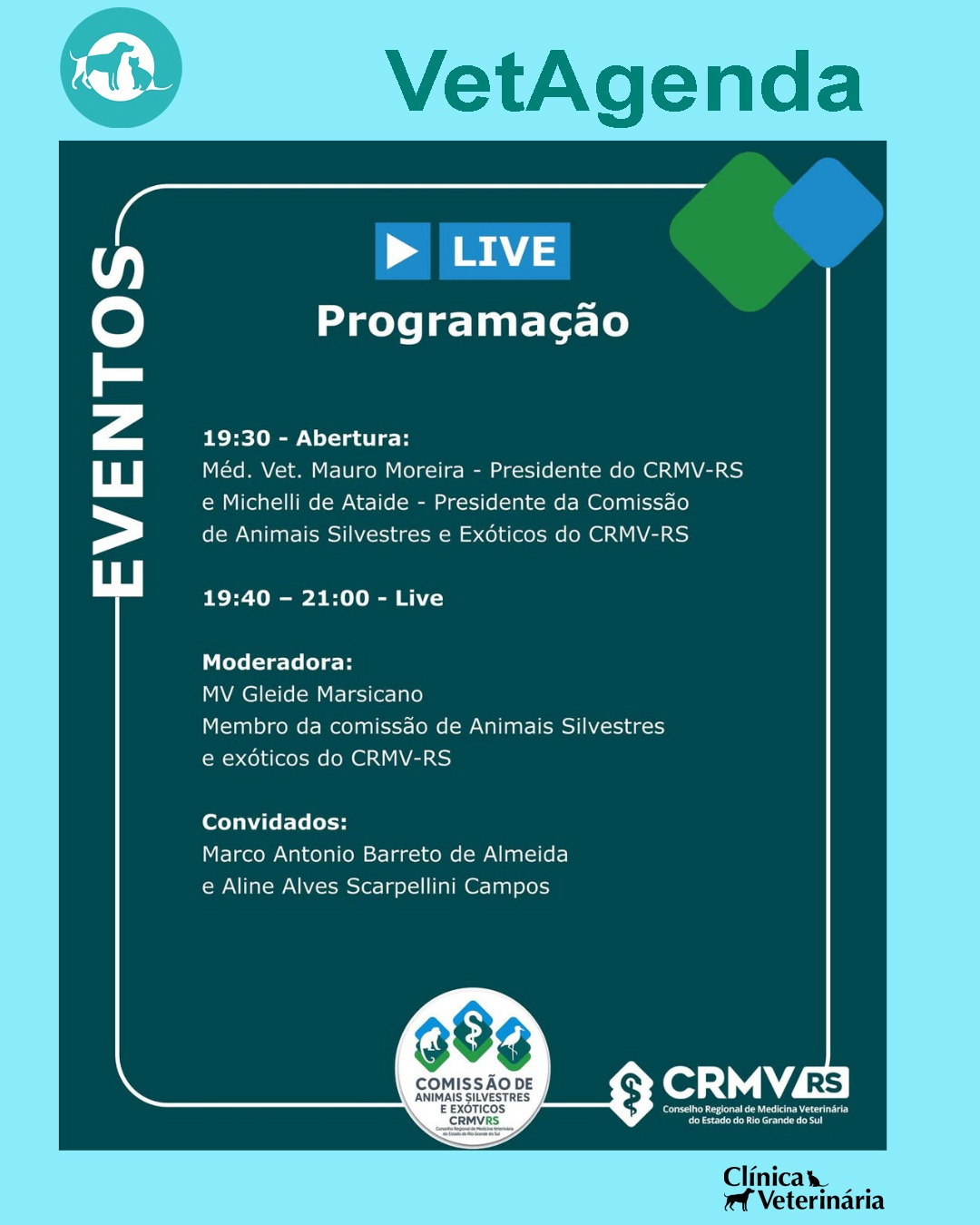 O CRMV-RS convida você para mais uma live promovida pela Comissão de Animais Silvestres e Exóticos, trazendo um tema atual e essencial para a sociedade: zoonoses de animais silvestres e exóticos e saúde única.
