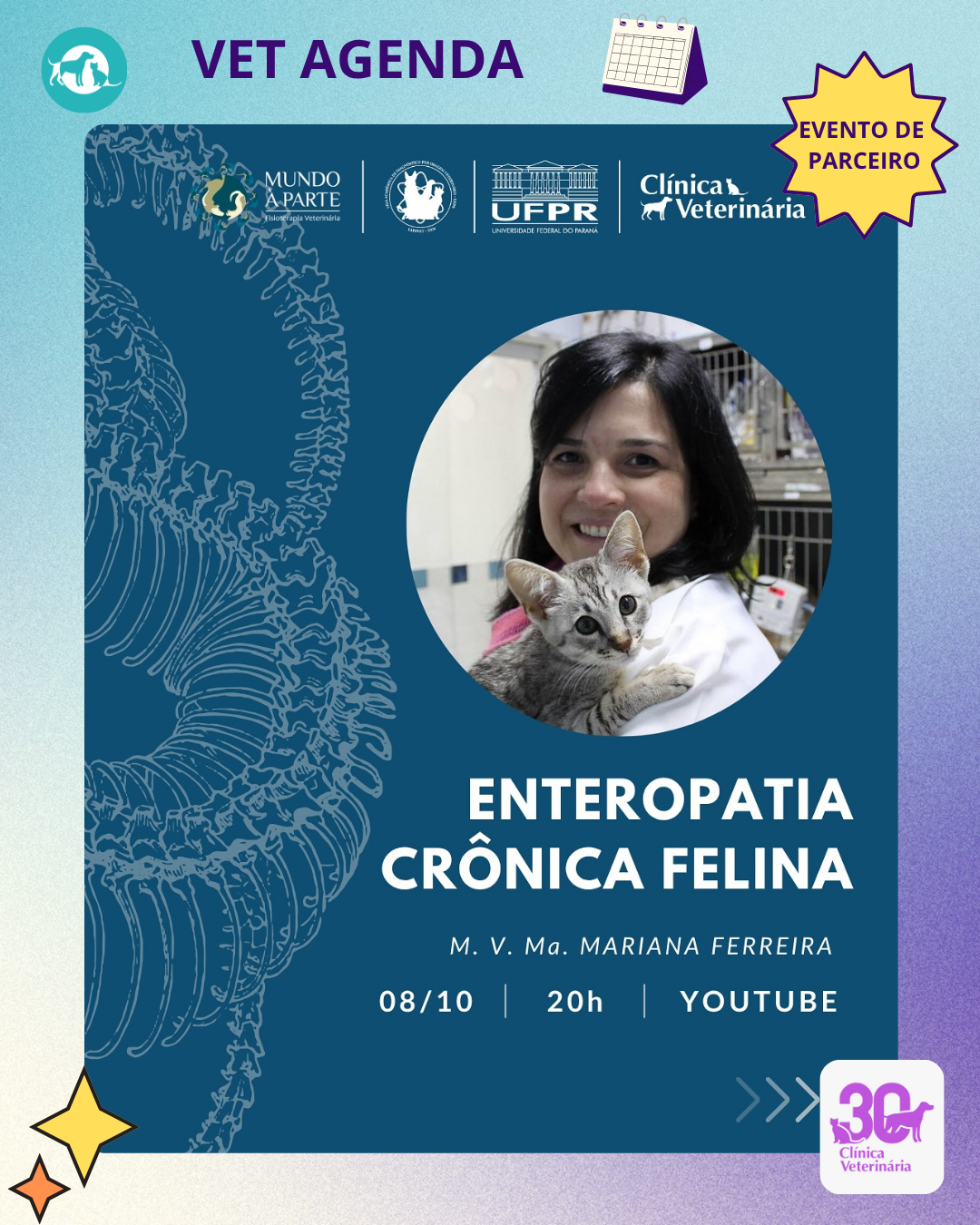 ☢️ Próxima palestra da LADIVET em breve! Ministrada pela M.V. Ma. Mariana Ferreina, na próxima quarta-feira, dia 08/10, às 20h, com o tema “Enteropatia Crônica Felina”!