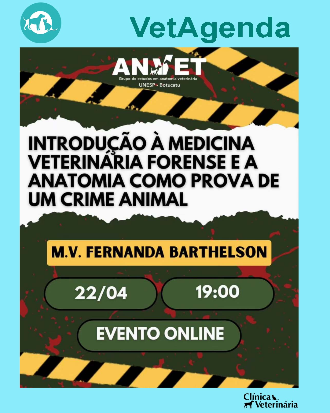 InícioVetAgendaPalestra: Introdução à Medicina Veterinária Forense e a Anatomia como Prova de um Crime Animal