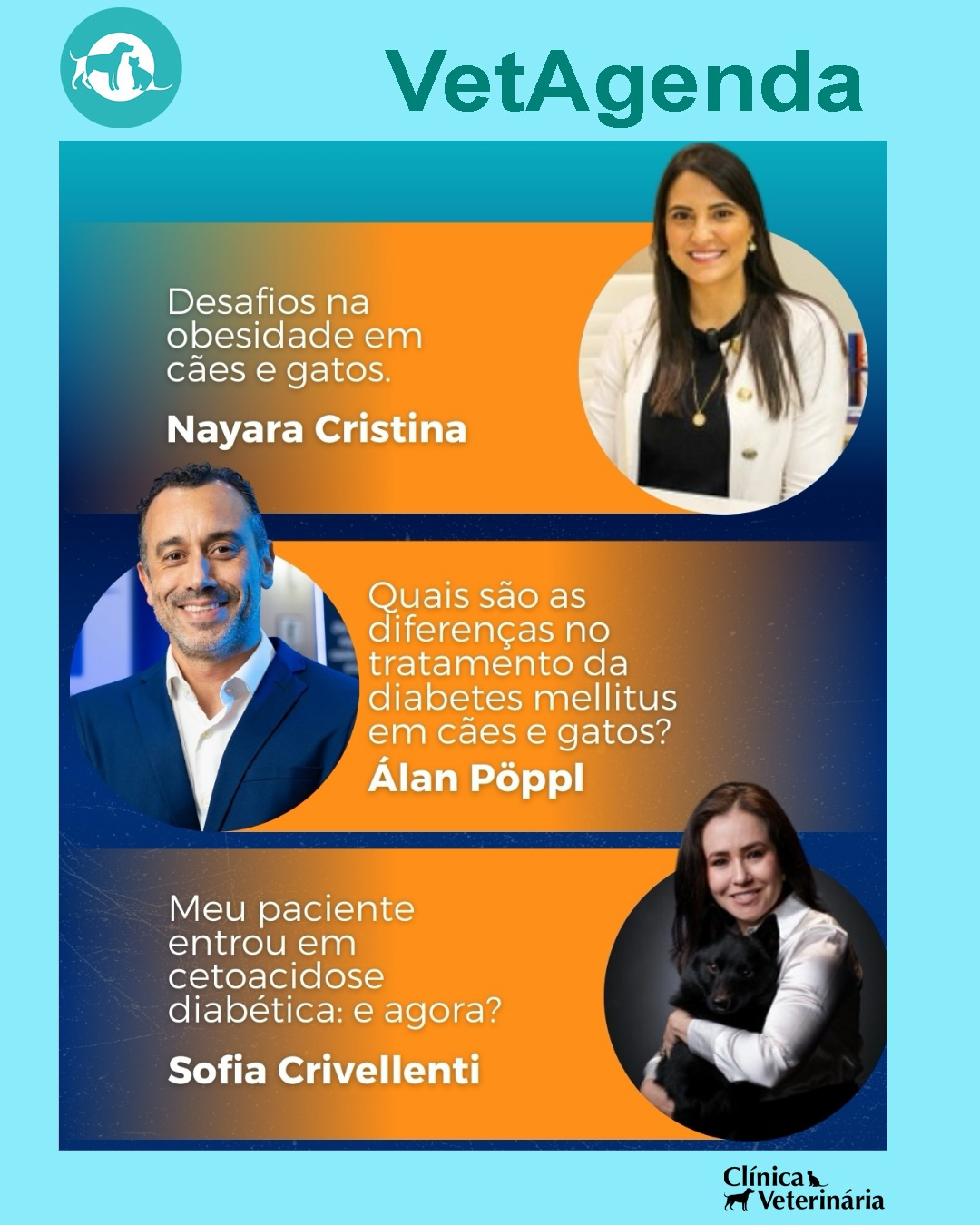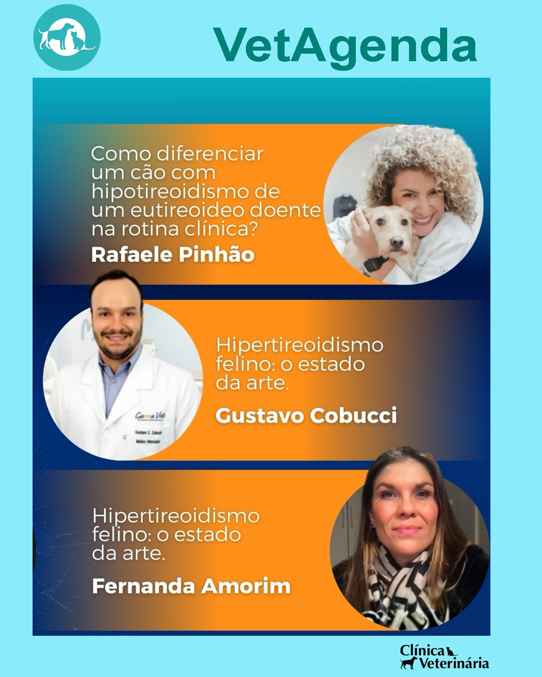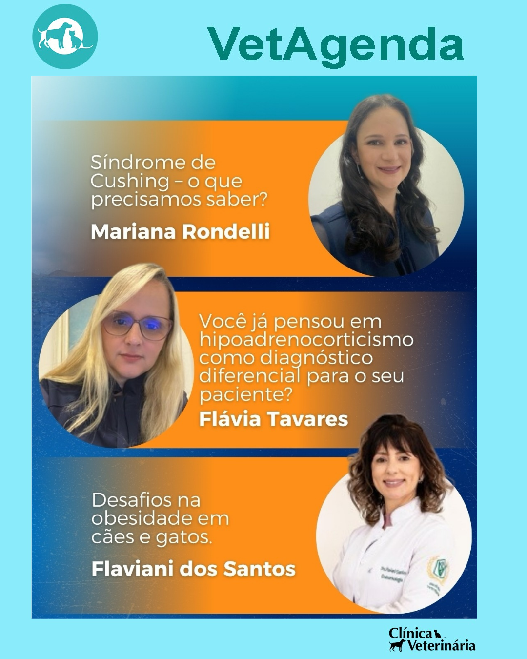 Será um dia completo de atualização em endocrinologia veterinária, com palestras sobre Cushing, hipoadrenocorticismo, obesidade, diabetes mellitus, cetoacidose diabética, hipotireoidismo e hipertireoidismo felino, trazendo o que há de mais atual para a rotina clínica.