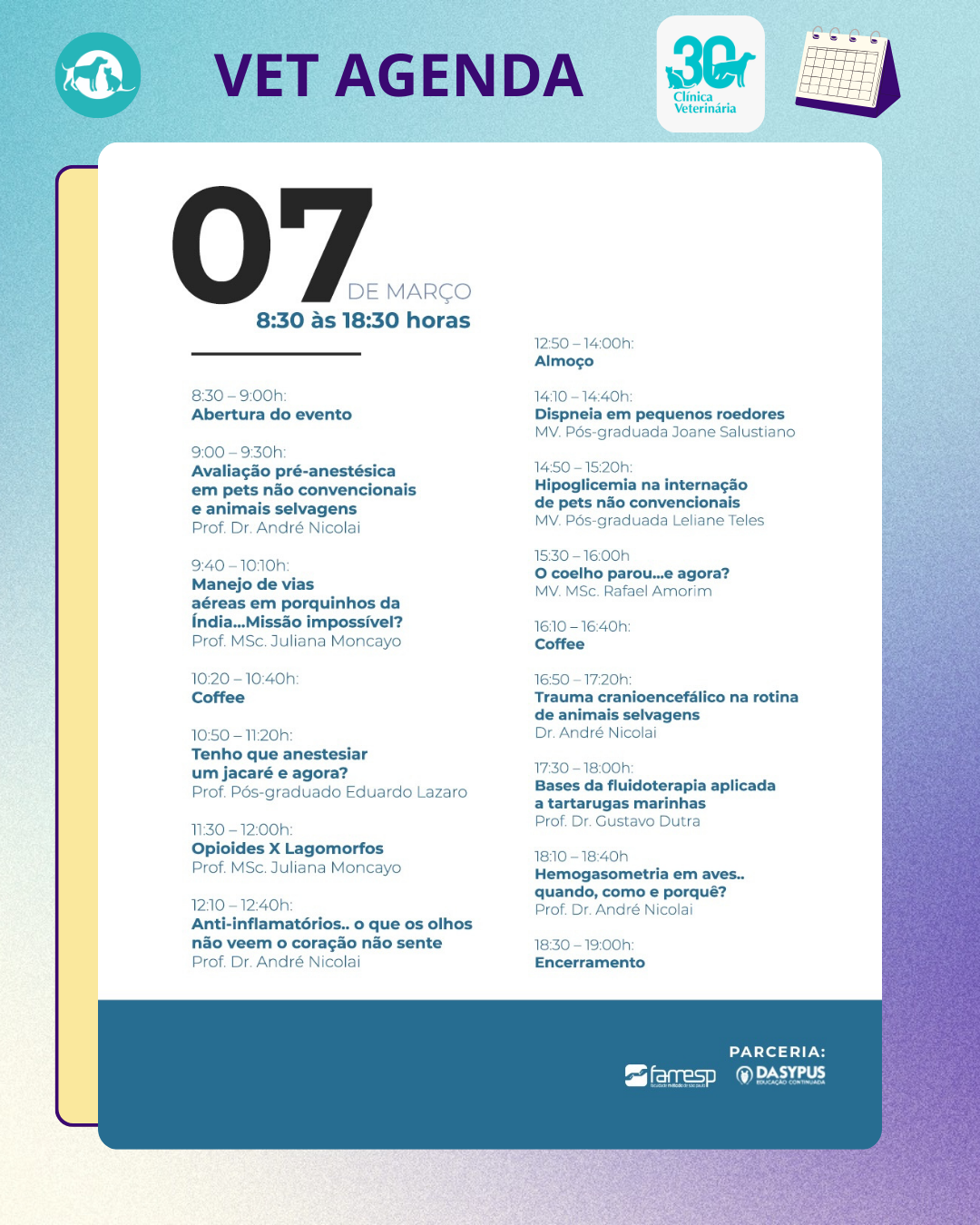AETISS – 1º Encontro de Anestesia, Emergência e Terapia Intensiva em Pets Não Convencionais e Animais Selvagens