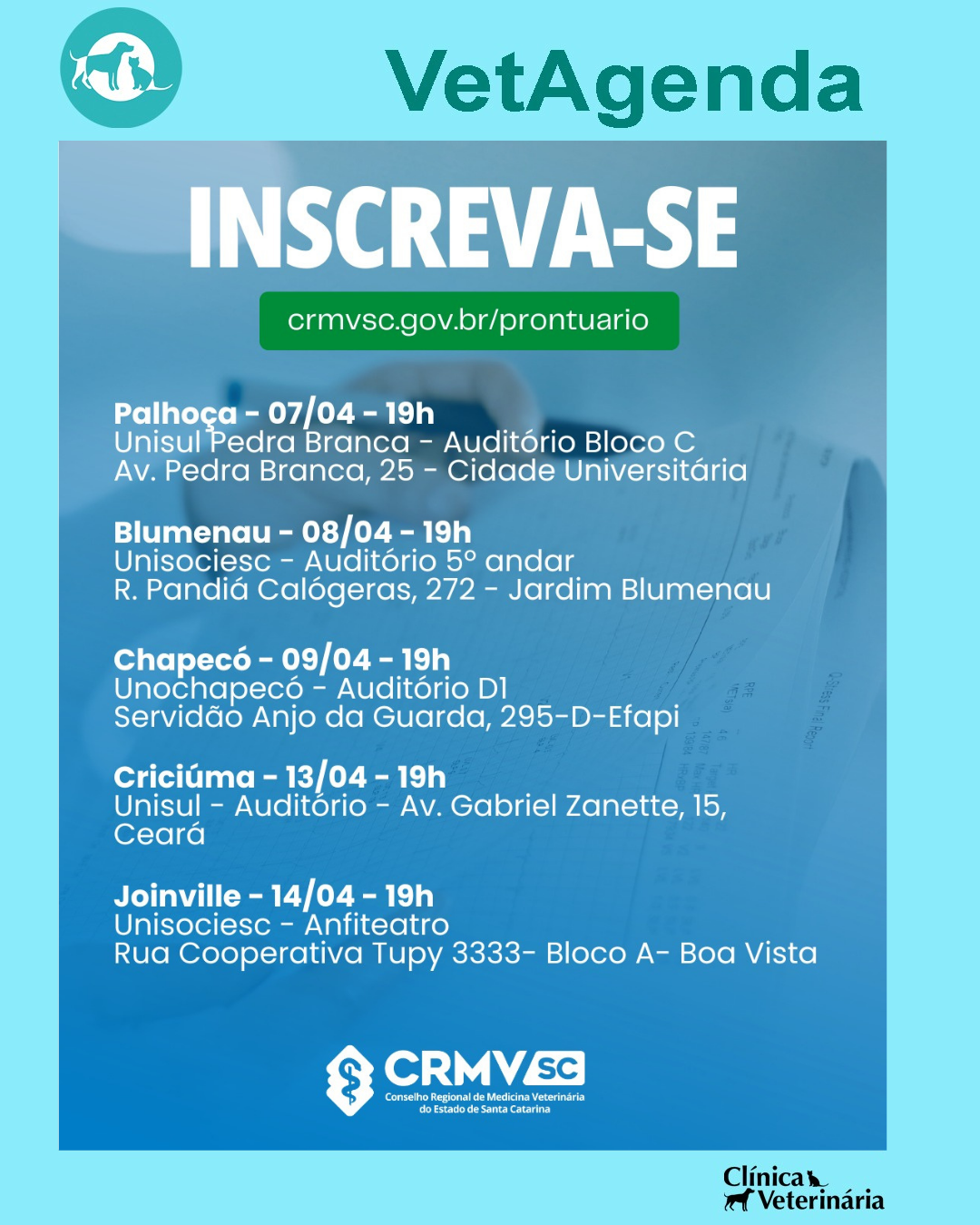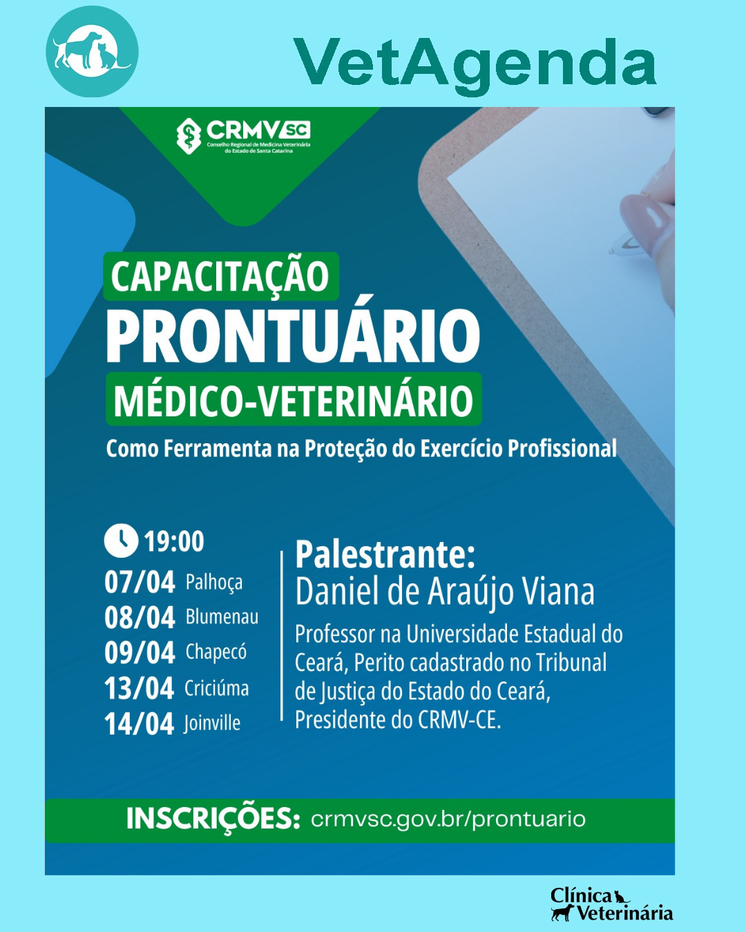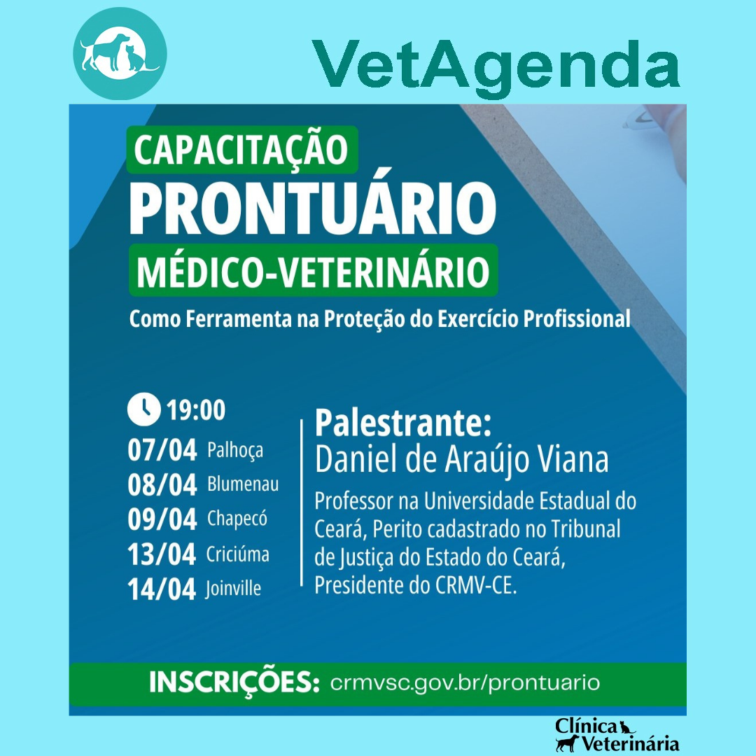 😉 Por isso, o CRMV-SC traz novamente para Santa Catarina o médico-veterinário Daniel de Araújo Viana, com a palestra “O Prontuário Médico-Veterinário como Ferramenta na Proteção do Exercício Profissional”.
