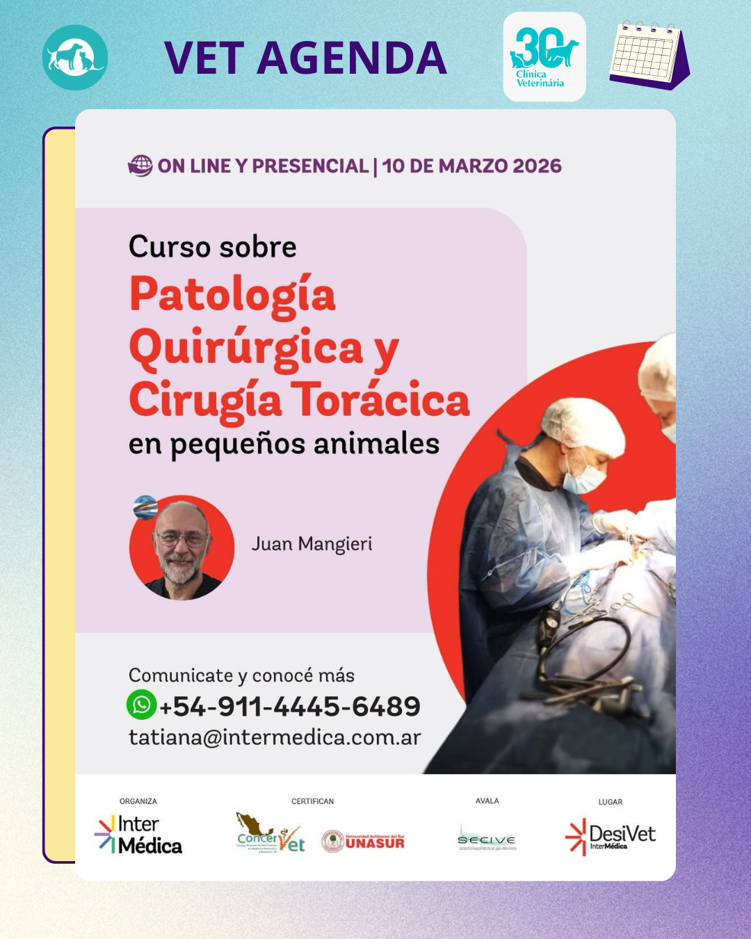 Por eso llega el Curso sobre Patología Quirúrgica y Cirugía Torácica en pequeños animales, una propuesta pensada para veterinarios que quieren profundizar, actualizarse y ganar seguridad en el quirófano.