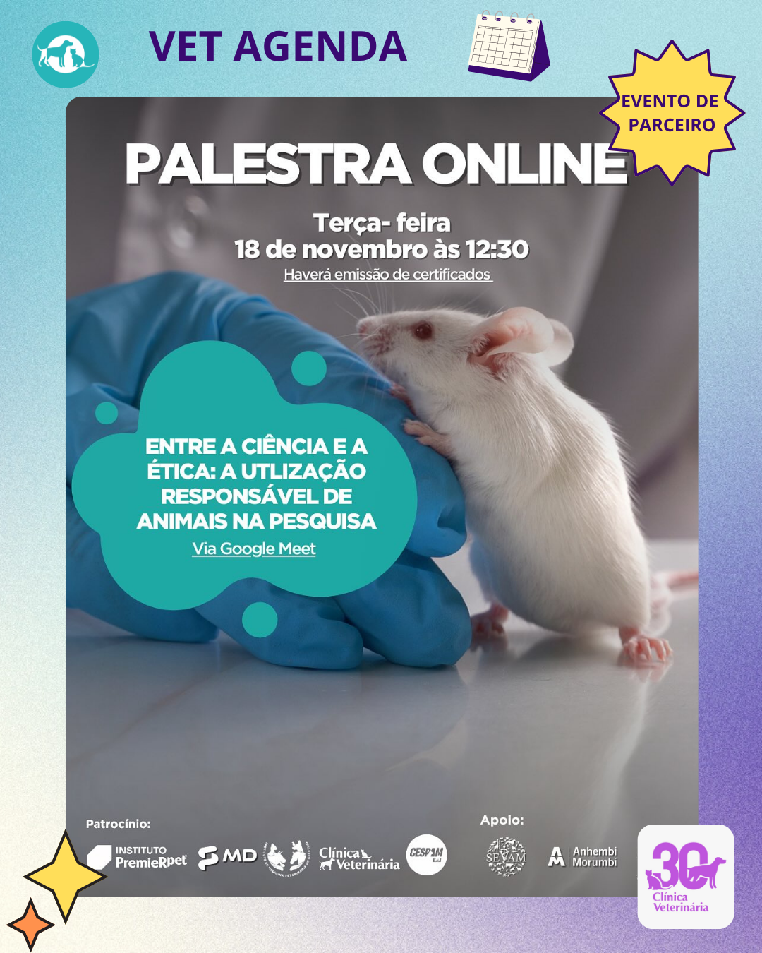 Então, na nossa próxima palestra online, abordaremos a importância do comitê e o seu papel na proteção do bem-estar dos animais, de forma a orientar pesquisadores e estudantes sobre boas práticas e respeito à vida.