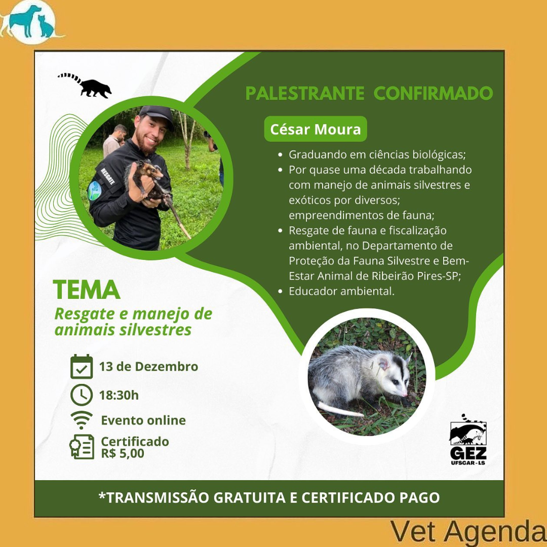 No dia 13 de dezembro, às 18h30, o educador ambiental @cesarbio_ vai contar um pouquinho da sua baita experiência com Resgate e Manejo de Animais Silvestres!