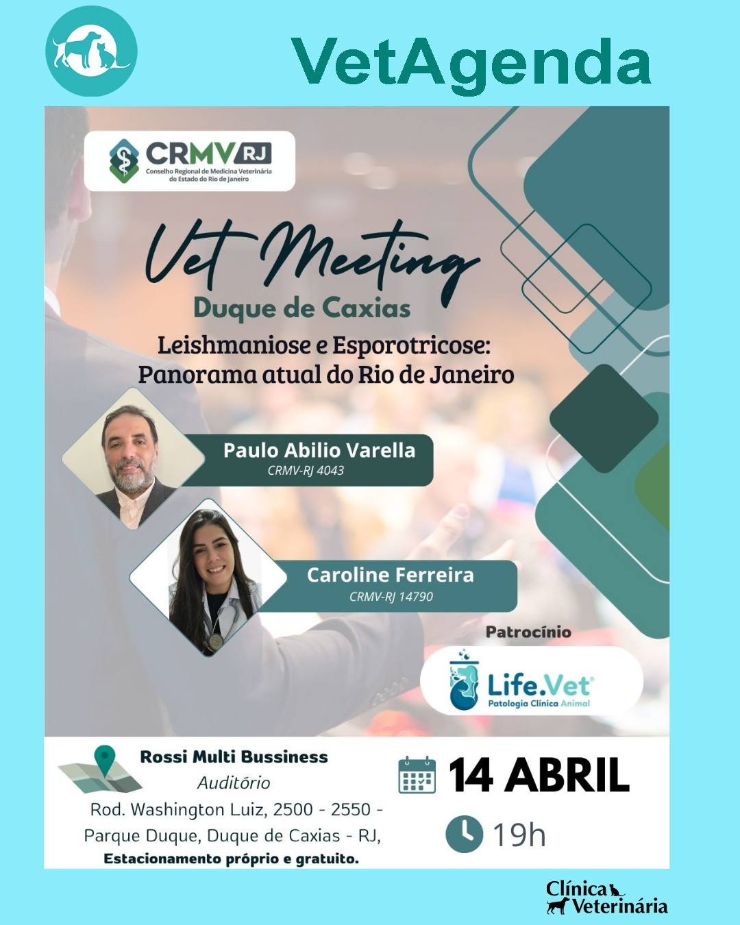 O Conselho Regional de Medicina Veterinária do Rio de Janeiro (CRMV-RJ) convida médicos-veterinários para o Vet Meeting, um encontro técnico que vai discutir o panorama atual da Leishmaniose e da Esporotricose no Rio de Janeiro. O evento acontece no dia 14 de abril, às 19h, no auditório Rossi Multi Bussiness, em Duque de Caxias, com estacionamento próprio e gratuito.