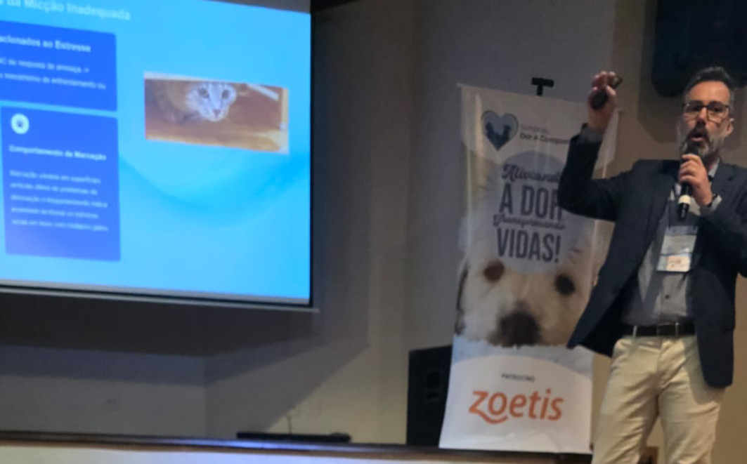 Encerrando o ciclo de palestras, Carlos Geraldo Jr abordou “Micção fora da caixa e síndrome de Pandora: dor ou comportamento?”. Sua fala integrou aspectos médicos e comportamentais, mostrando como o desconforto físico frequentemente se manifesta em alterações no uso da caixa de areia e outros comportamentos indesejados em felinos.