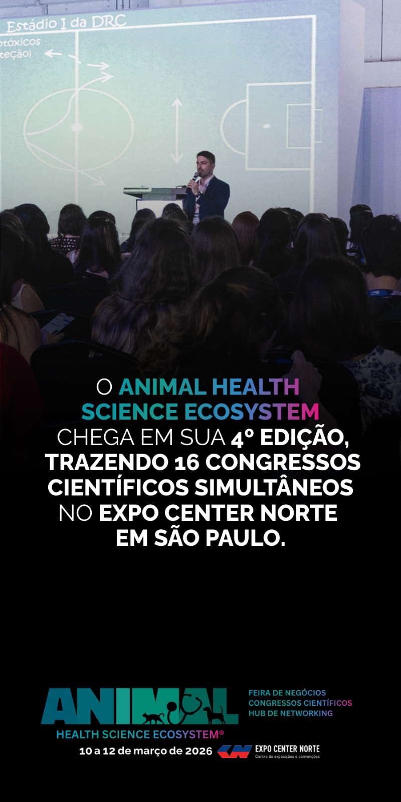 O Animal Health Science Congress + Expo acontecerá de 10 a 12 de março no Expo Center Norte, em São Paulo, consolidando o maior ecossistema de ciência, negócios e inovação da saúde animal e do mercado pet. Em sua quarta edição, o evento reforça seu propósito: promover integração estratégica, fortalecer o mercado e impulsionar o desenvolvimento setorial no Brasil e no exterior.