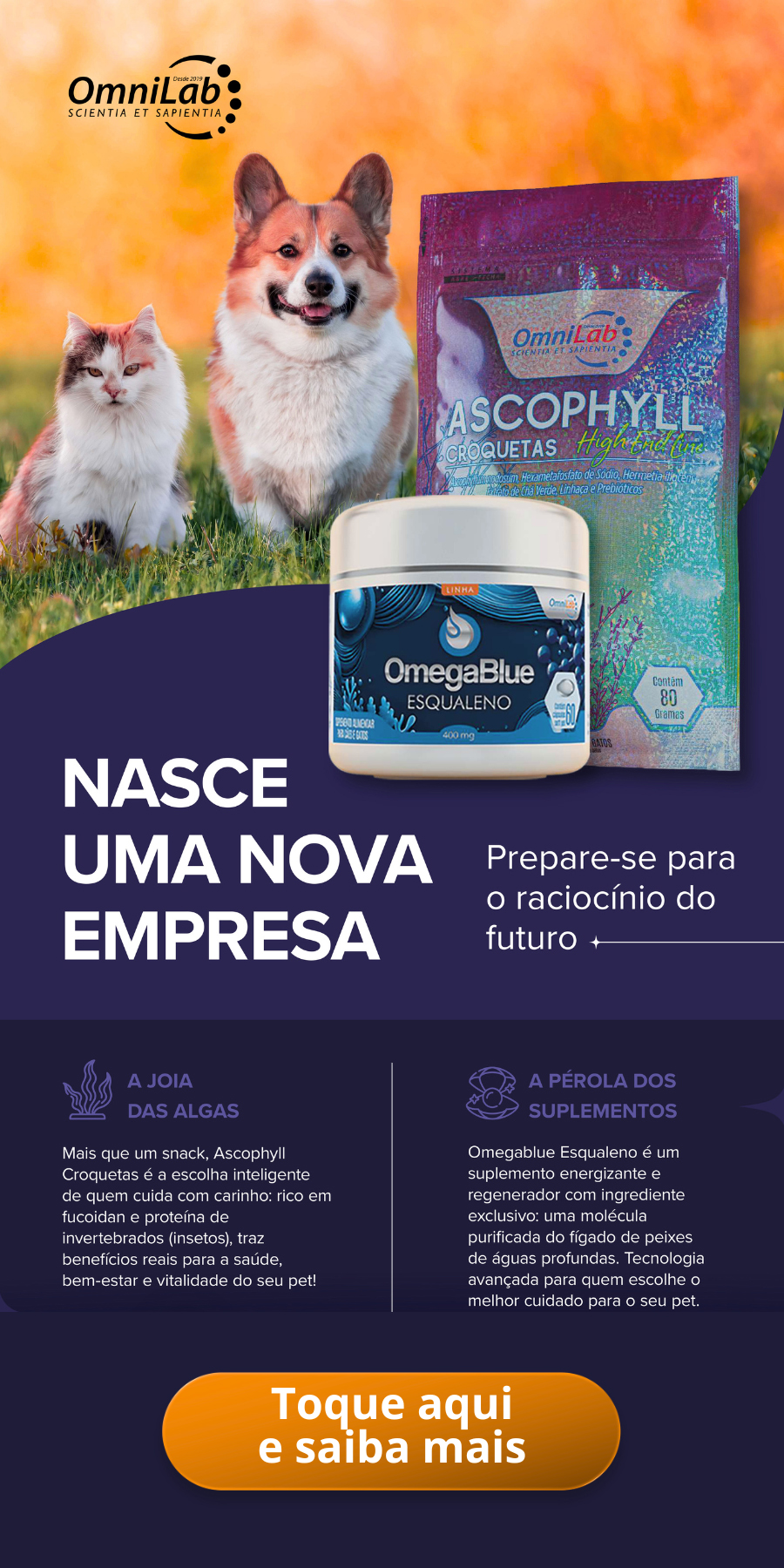 Fundada em 2019, a OmniLab surgiu com uma proposta cientificamente orientada para integrar nutrição funcional, inovação tecnológica e medicina veterinária baseada em evidências, e assim ampliar a qualidade e a expectativa de vida dos animais de companhia.
