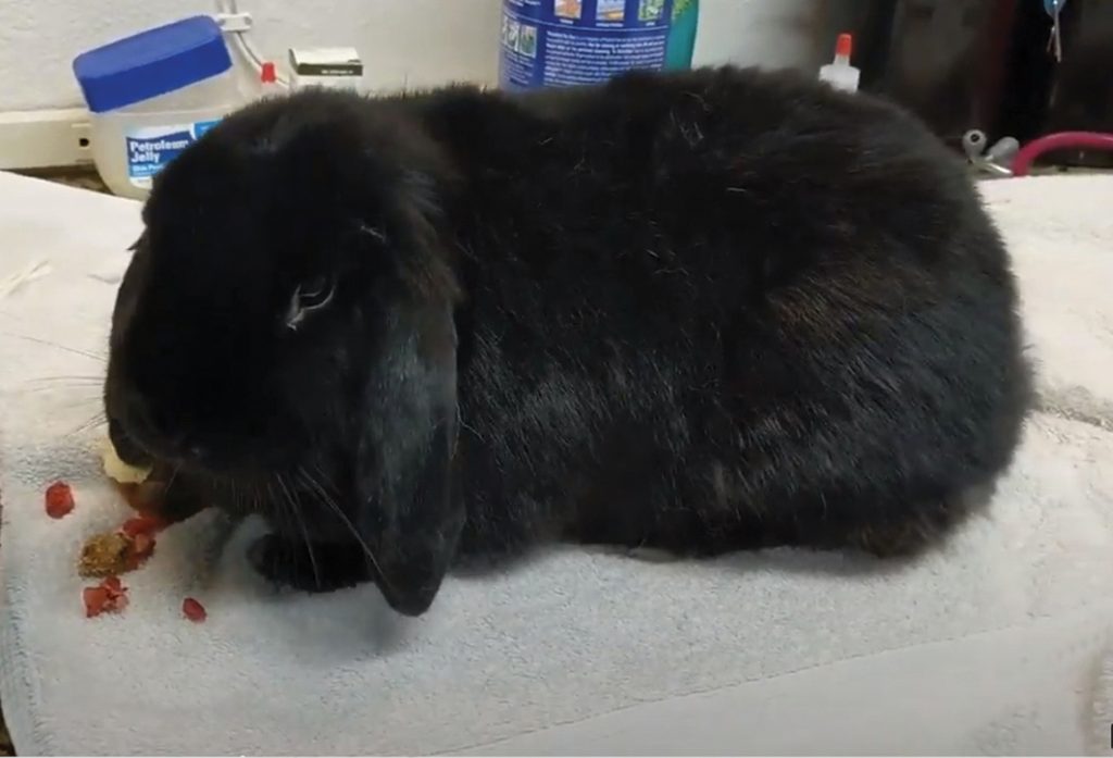 Caso o coelho esteja muito hesitante, é improvável que ele saia da caixa. Os autores deste artigo recomendam o uso de petiscos para estimulá-lo a sair. Uma abertura na parte superior pode permitir o exame do animal dentro da caixa de transporte. A utilização de uma toalha sobre o coelho é importante para bloquear os estímulos visuais quando a parte superior da caixa for retirada, reduzindo o estresse do animal.