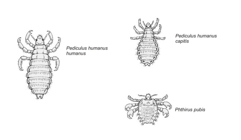 Pessoas sem teto, devido ao seu estado físico e a hábitos precários de higiene (falta de banho e/ou troca de vestuário), também podem estar expostas a infestação por piolhos (pediculose) e possíveis infecções relacionadas. A pediculose pode ser causada por três espécies de piolhos hematófagos, o Pediculus humanus humanus (piolho-do-corpo ou muquirana), Pediculus humanus capitis (piolho-da-cabeça) e Phthirus pubis (piolho-do-púbis ou chato) (Figura 2). O P. h. humanus é considerado o vetor competente de três microrganismos potencialmente letais (Rickettsia prowazekii, Bartonella quintana e Borrelia recurrentis) 14,15. Em consequência, a pediculose é relatada como uma doença negligenciada e importante para a saúde pública.