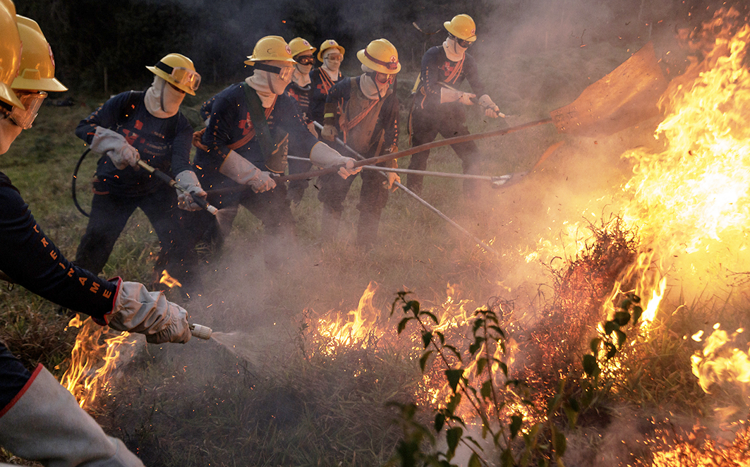 Figura 11 – Treinamento de combate ao fogo, para resgate em incêndios florestais de vítimas queimadas e intoxicadas. Créditos: Diego Baravelli / Grad