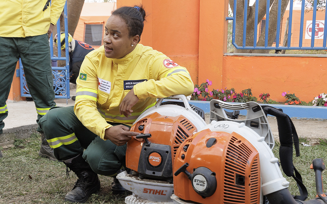 Figura 19 – Treinamento e reciclagem para os membros da brigada florestal. Créditos: Diego Baravelli / Grad