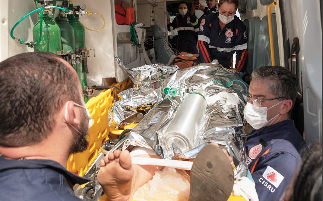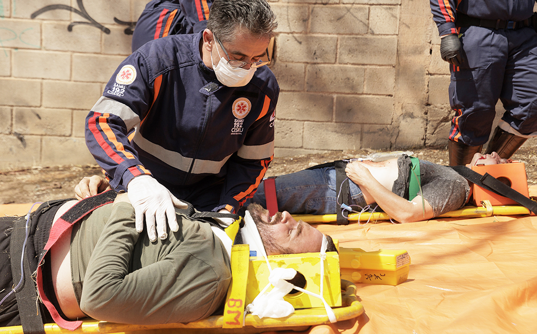 Figura 27 – Treinamento em ações do Samu, responsável pelo resgate das vítimas humanas e encaminhamentos. Créditos: Diego Baravelli / Grad