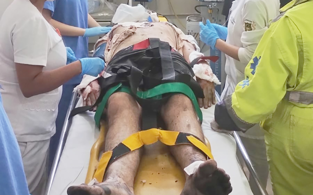 Figura 28 – Treinamento com recebimento de vítimas humanas no Hospital e Maternidade São José. Créditos: Diego Baravelli / Grad