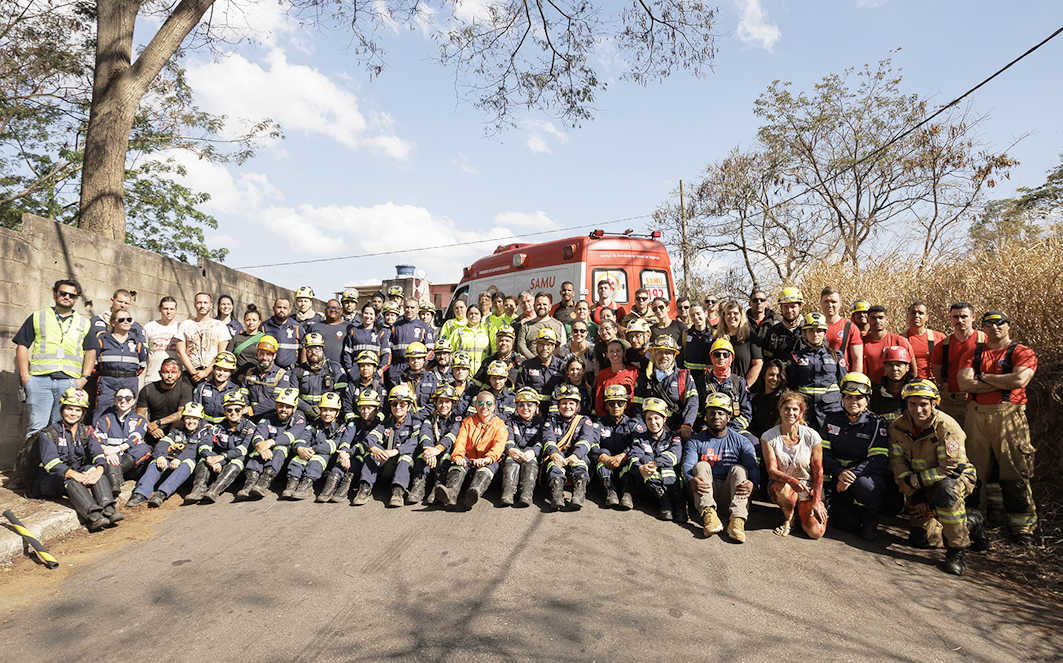 Figura 30 – Equipes das instituições que participaram do simulado promovido pelo Grad em Conselheiro Lafaiete, MG, primeiro município do país a desenvolver um treinamento dessa magnitude. Créditos: Diego Baravelli / Grad