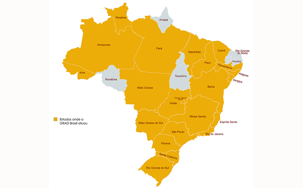 Figura 31 – Estados brasileiros onde o Grad atua desde 2011, com mais de 100 missões realizadas em todas as regiões do país. Créditos: Diego Baravelli / Grad