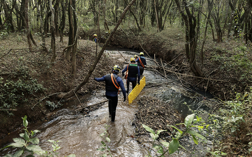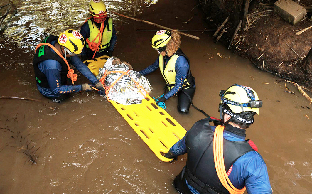 Figura 25 – Treinamento de resgate,classificação e encaminhamento das vítimas, humanas e animais, segundo o Protocolo Start. Créditos: Diego Baravelli / Grad