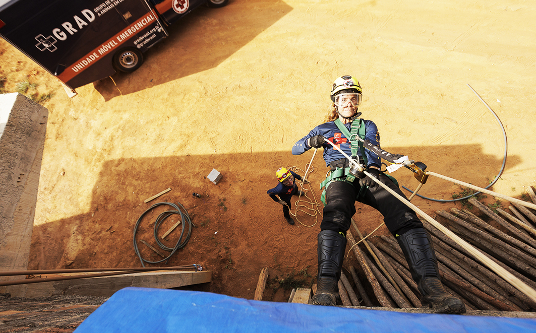 Figura 4 – Treinamento para resgate em altura, com orientação em técnicas de rapel. Créditos: Diego Baravelli / Grad