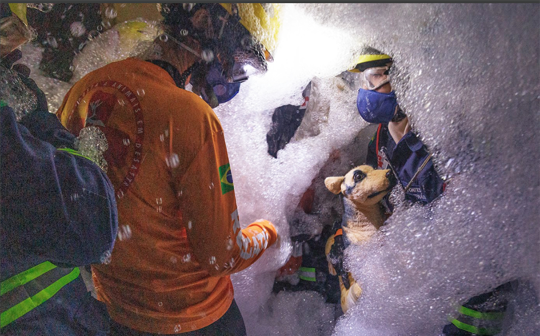 Figura 12 – Resgate em estruturas colapsadas, com vítimas humanas e animais. Créditos: Diego Baravelli / Grad