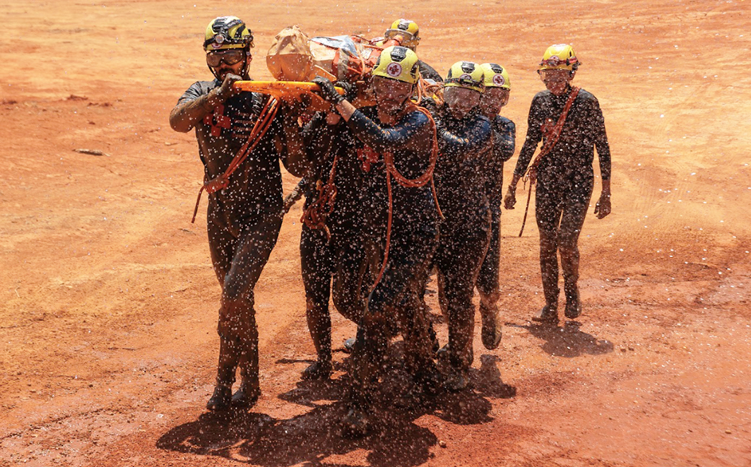 Figura 20 – Treinamento em logística de resgate, protocolo sanitário. Créditos: Diego Baravelli / Grad